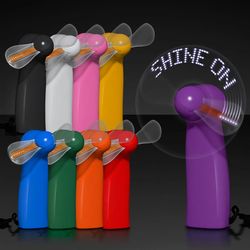 Pre-programmed message fan. Displays up to 10 lines at 18 characters each, using 180 characters - Custom messages! Includes 3 replaceable AAA batteries and breakaway lanyard. CPSIA compliant. This product is not suitable for children under 12 years of age.